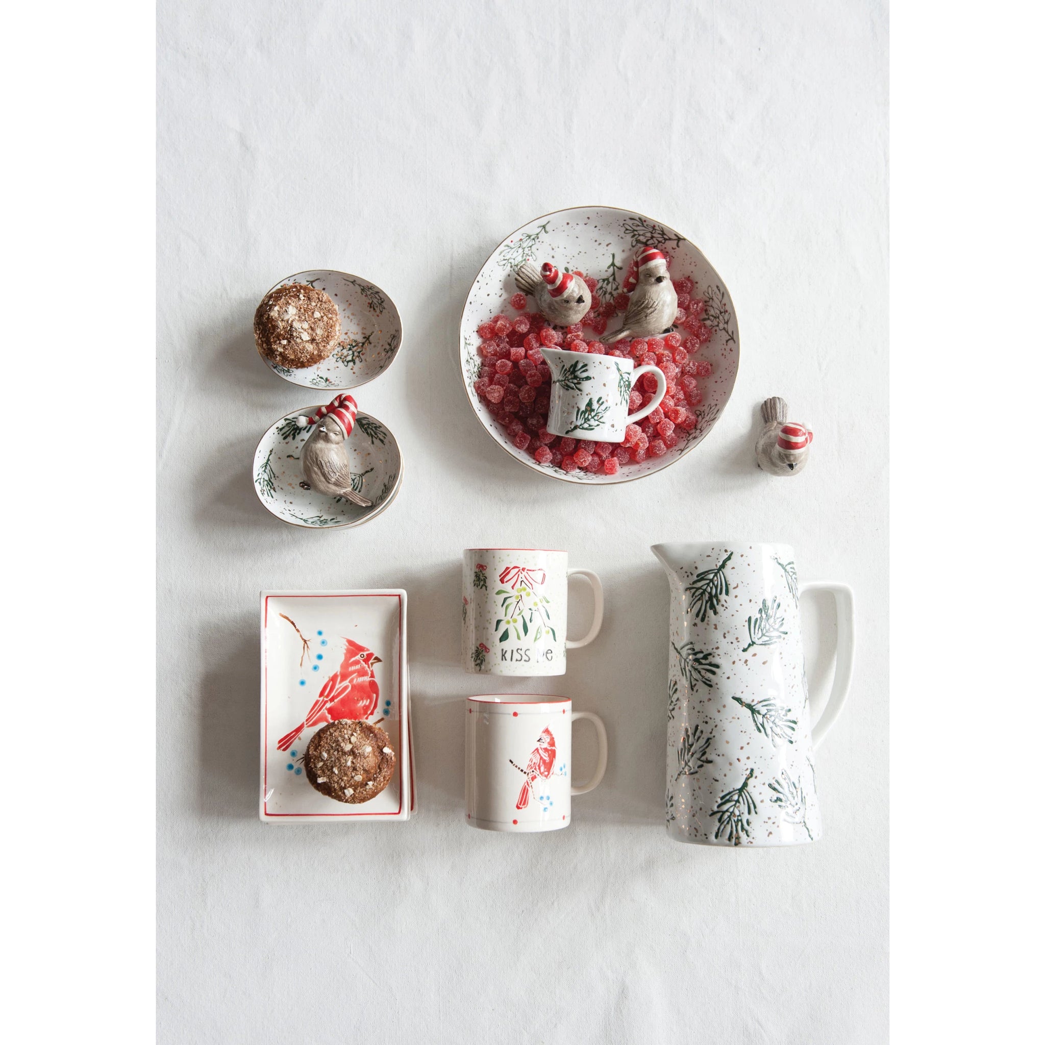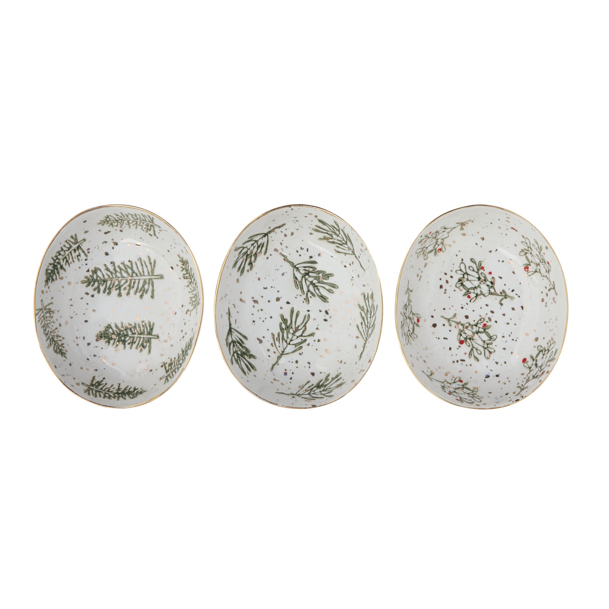 5"L x 4-1/4"W Oval Debossed Stoneware Dish w/ Greenery & Gold Electroplating.