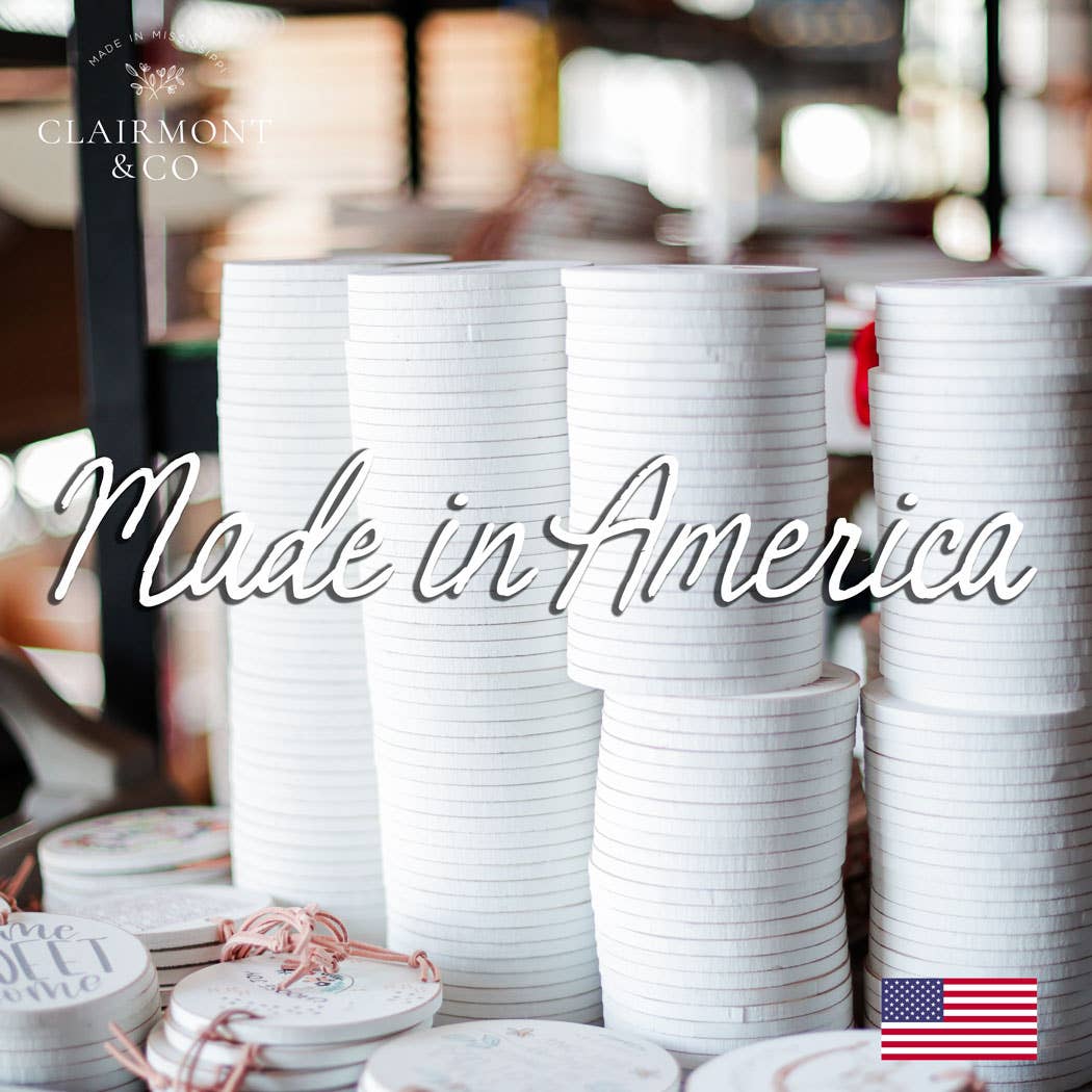 Our 6" Wood Ornaments are handmade in our warehouse in Laurel, Mississippi. They are made of real wood. Customize this charming design with your City, State for a unique ornament perfect for your customers. Hang these ornaments on the tree to celebrate your hometown, remember a great vacation, or a souvenir.