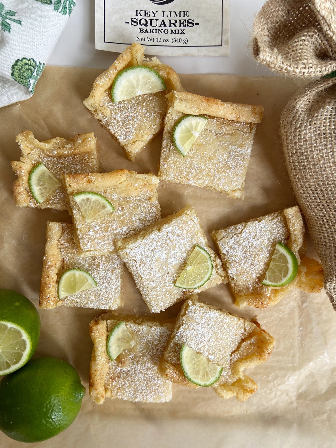 Here is an Award Winning Key Lime Square Mix! This baking mix is bursting with key lime flavor and brought home the Gold Award for Best Baked at the Dallas Trade Show! There is no artificial color added to the mix and they are made with real dried lime juice. So don't expect them to be green, just expect them to be great!