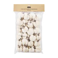 Celebrate the season of appreciation with our cream mini velvet pumpkin set. The set comes with 24 velvet mini pumpkins. These decorative pumpkins can be used as decorative filler for vases and bowls.