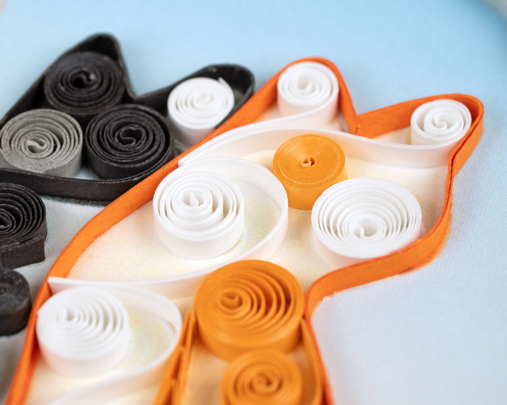 All of our cards come with a coordinating envelope, and a short history of quilling on the back of the card. Our square cards require extra postage.